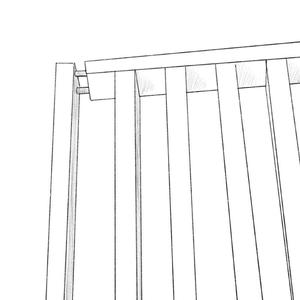 Na vrch steny priskrutkujte zvislé lamely pomocou skrutiek 7x60.